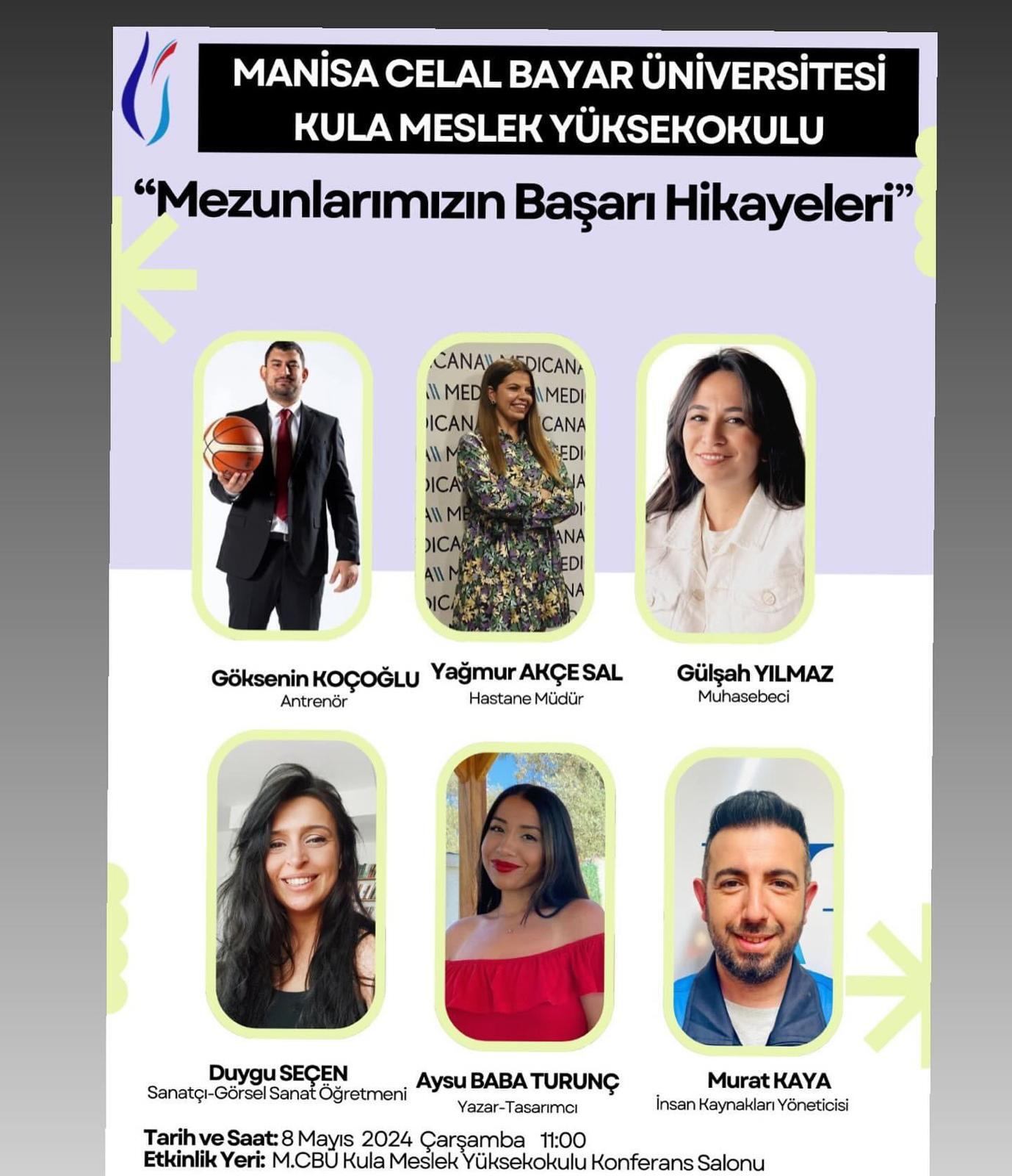 Kariyer Günleri kapsamında Meslek Yüksekokulumuzda düzenlediğimiz etkinlikte hedeflerine ulaşmış ve kariyer yolunda başarılar elde etmiş mezun öğrencilerimizi ağırladık. Arkadaşlarımıza bize ayırdıkları zaman ve harcadıkları emek için çok teşekkür ederiz. Kula MYO’da bir aile olduğumuzu ve kurumsal aidiyetimizi en sağlam şekilde yerleştirdiğimizi bugün hep birlikte gördük. Kantincimiz Bayram Kaptan’dan destek personelimize, güvenliğimizden hocalarımıza öğrencilerimizin hayatlarına dokundukları için üniversitemiz adına çok teşekkür ederim. Mevcut ve mezun olacak öğrencilerimize hediyeler getiren, onlara iş ve staj imkanı tanıyan, hepsinin kalplerine ve hayallerine dokunan Uludağ Basketbol Antrenörü Göksenin Koçoğlu’na, Eti Bakır A.Ş İnsan Kaynakları ve İdari İşler Yöneticisi Murat Kaya’ya, Elit Mühendislik Proje Yöneticisi ve Tasarımcı Aysu Turunç’a, Görsel Sanatlar Öğretmeni Duygu Seçen’e, Medicana International İzmir Hastanesi Kurumsal Pazarlama ve İş Geliştirme Müdürü Yağmur Akçe’ye ve HOMMAK Makine SMMM Finans Müdürü Gülşah Yılmaz’a çok teşekkür eder ve başarılarının daim olmasını dilerim.